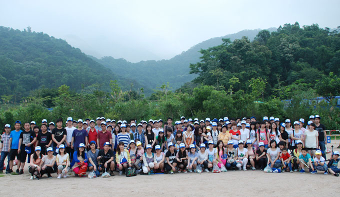 全体员工及部分家属梧桐山山脚合影