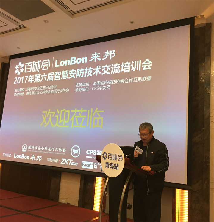 5月5日下午,2017年第六届百城会·智慧安防技术交流培训会的第五站:青岛,在青岛颐海花园酒店隆重举行。青岛市公安局科技处调研员赵俭,青岛市公共安全防范行业协会副理事长王建中共同出席会议并致辞。来自青岛及周边城市的集成商、工程商、经销代理商及行业用户参加了培训会,一起相互交流与学习安防行业的发展和变革。